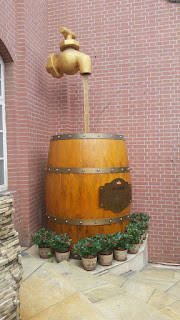Yes, that is a fountain of beer. What I found interesting was that the faucet wasn't attached to the wall, so for the longest time, I tried to find where the beer was coming out from. In the left picture you can see a frame of Tsingtao Beer in South Korea, but to be honest, I don't think I've ever seen this beer in Korea (where my other Korean friends said the same thing), so we learned something new!